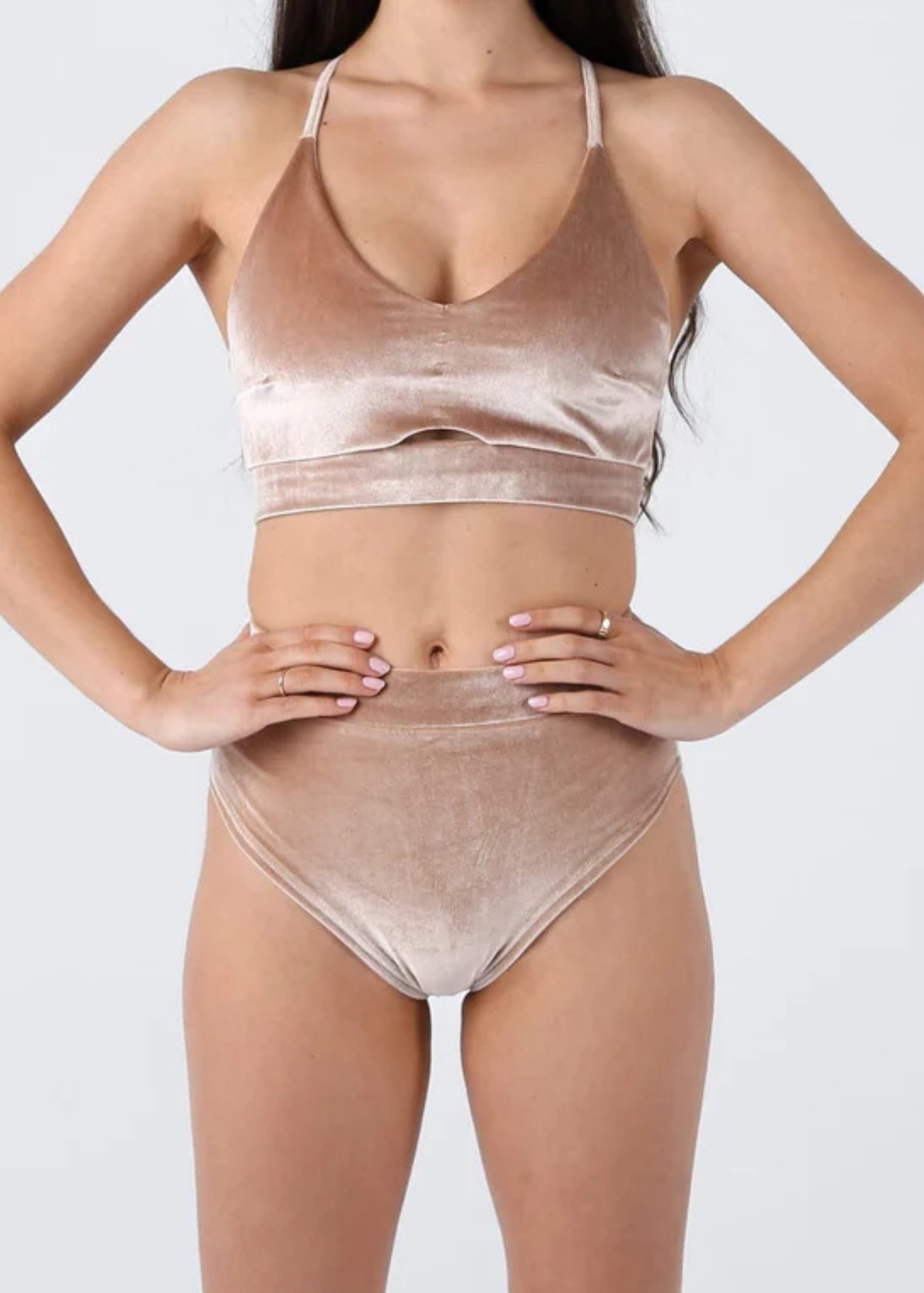 The Gap Top is a velvet version of our Moon Top. It's lined, making it comfortable and opaque. Adjustable straps and a closed front make the top comfortable and secure even when worn upside down. The front cutout adds a touch of originality. Each top has space for pads, which can be added via the personalization option.