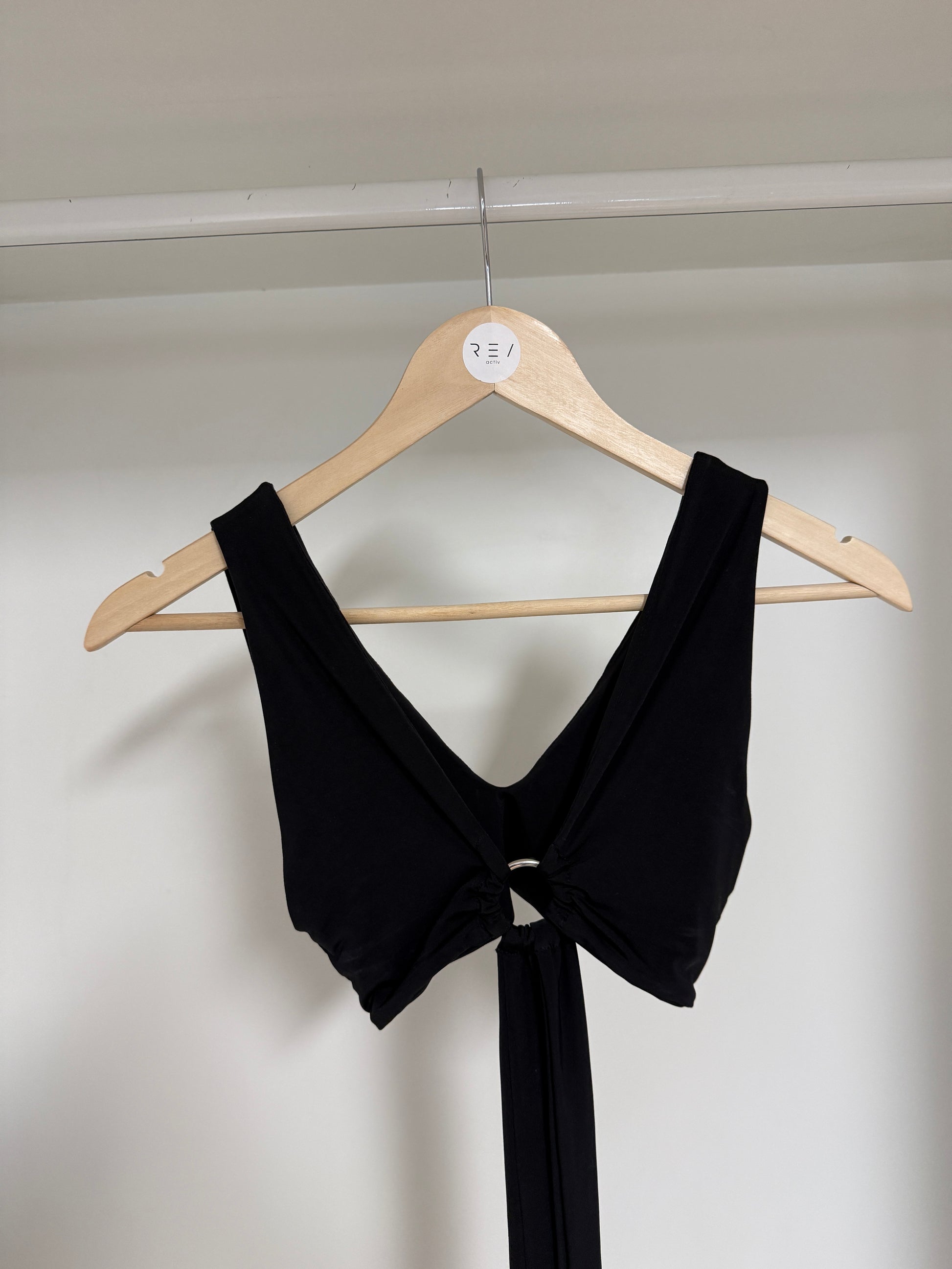 BLACK SENSUAL TOP Z OZDOBNYM KÓŁKIEM I WIĄZANĄ SZARFĄ.