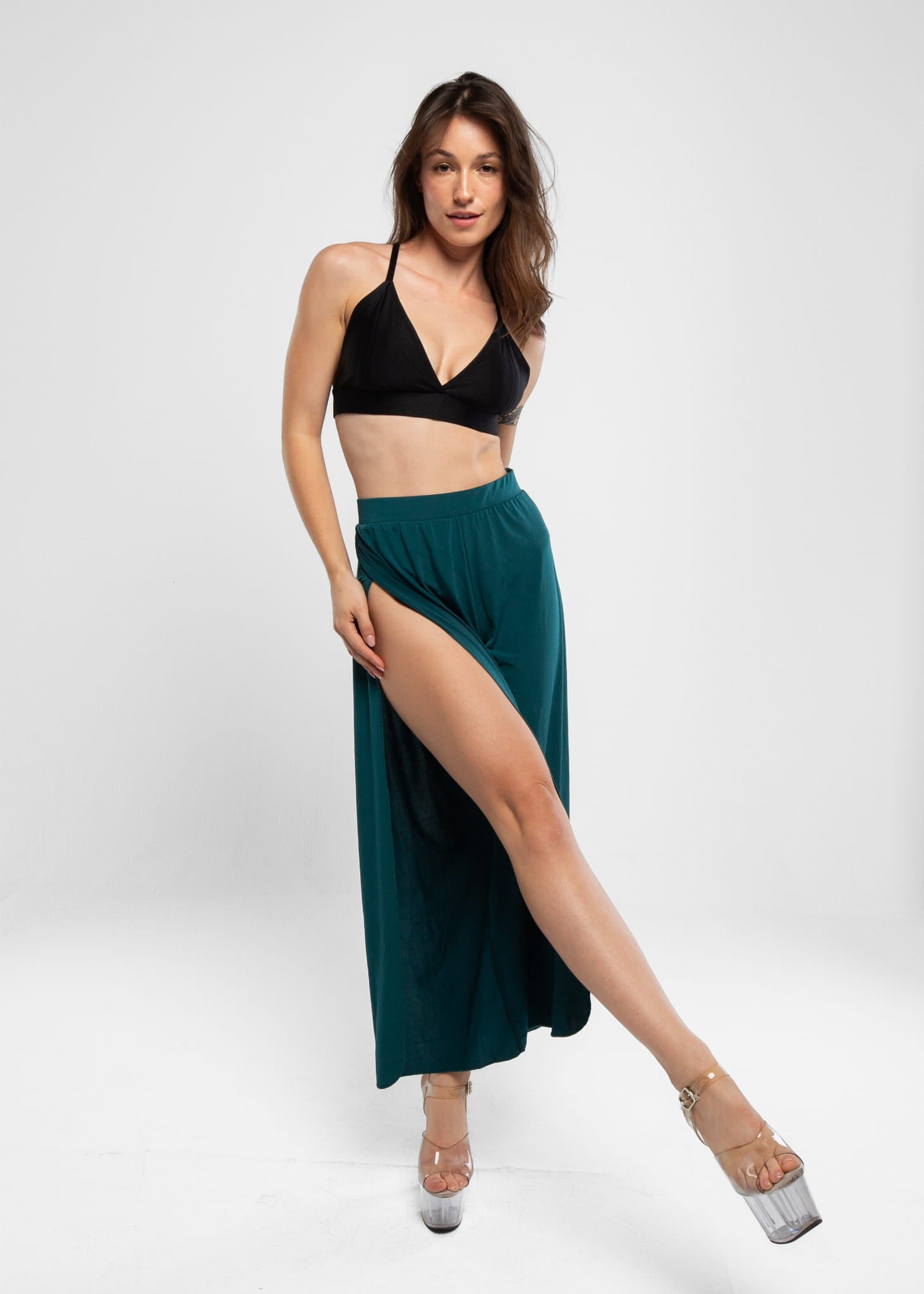 Spodnie Sensual zostały stworzone z myślą o pole dance exotic. Spodnie posiadają wysoki stan, mocne rozcięcie z boku podkreślają i wydłużają nogi. Luźne nogawki sprawiają, że taniec jest jeszcze piękniejszy. Dzięki gumce w talii spodnie idealnie przylegają do ciała i dopasują się do każdej sylwetki.